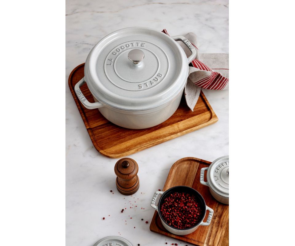 V roce 1974 Francis Staub založil svou společnost na litinové nádobí v Alsasku, východním regionu Francie, který je znám svou bohatou gastronomickou historií. Několik let po vzniku značky se spojil s předním francouzským michelinským šéfkuchařem Paulem Bocusem, který nádobí propůjčil svou tvář a proslavil jej mezi ostatními zkušenými kuchaři po celém světě. Od té doby se značka Staub prodává ve více než padesáti zemích a je známkou vysoké kvality, prvotřídního zpracování a ikonického vzhledu. Pro své jedinečné vlastnosti si litinový hrnec s poklicí Staub Cocotte oblíbí zkušení profesionálové ale i začátečníci. Materiál je vysoce odolný vůči teplotním šokům či poškrábání, snadno se udržuje v čistotě a je vhodný na všechny typy ohřevných ploch včetně indukce a trouby. Jde o ideálního pomocníka při přípravě polévek, omáček, ale také k dušení či pomalému vaření, který uchovává teplo déle než jiné klasické nádoby. Navíc se bude na prostřeném stole dokonale vyjímat jako krásná dekorace.