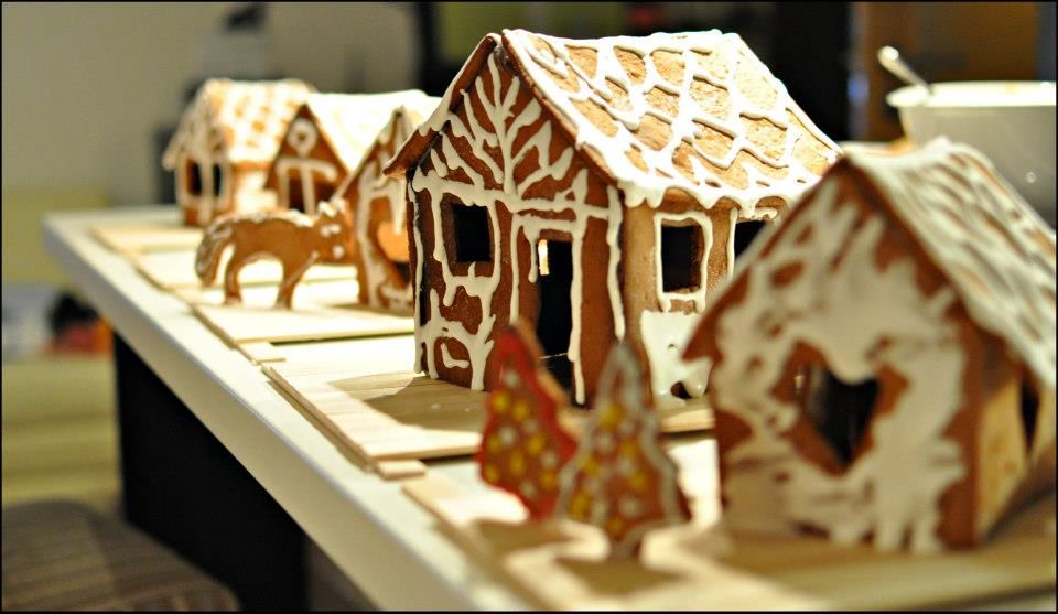 Jednotlivé stěny chaloupky ihned po upečení potřete rozšlehaným vejcem, aby byly lesklé. Na rovné podložce je nechte den odpočinout. Poté slepte polevou tak, aby vznikla chaloupka.