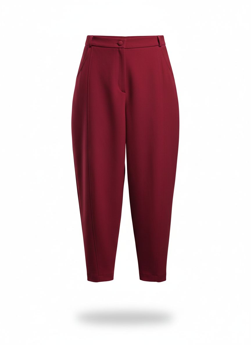 Nadčasový střih se zúženými nohavicemi a vysokým pasem jemně obepne křivky a působí sofistikovaně. Kalhoty v odstínu červeného vína jsou skvělým základem valentýnského outfitu a s jemným topem vytvoří vyvážený, elegantní look.