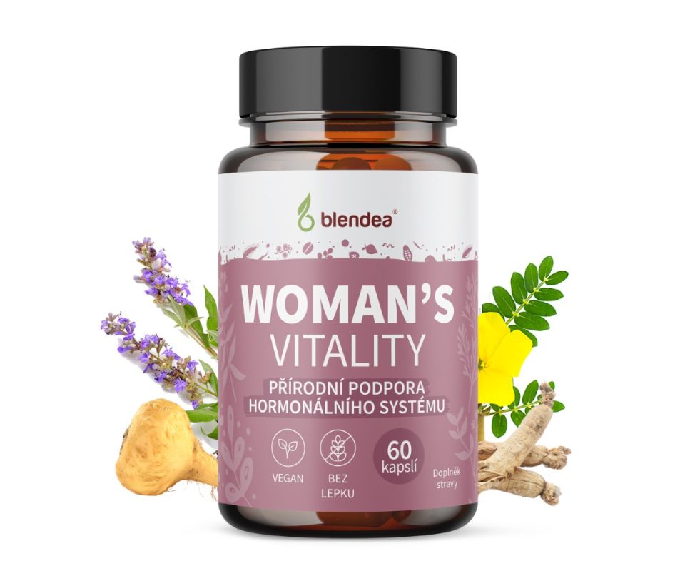 Nepravidelný cyklus, únava, výkyvy nálad. Hormonální nerovnováha dokáže potrápit každou ženu… Kapsle Blendea Woman’s Vitality jsou sestavené z účinné kombinace bylin, vitaminů a minerálů, které podpoří ženskou hormonální rovnováhu, zdraví a celkovou vitalitu. Maca peruánská, Ženšen pravý, Kotvičník zemní, Drmek obecný, Pepř černý, zinek, hořčík, vitaminy skupiny B (B2, B3, B6 a B12) a vitamin D3 pomáhají harmonizovat ženské tělo i mysl. Uvidíte, že se tento doplněk stravy okamžitě stane nedílnou součástí vaší každodenní péče o zdraví. Více na www.blendea.cz, 60 kapslí za 399 Kč.