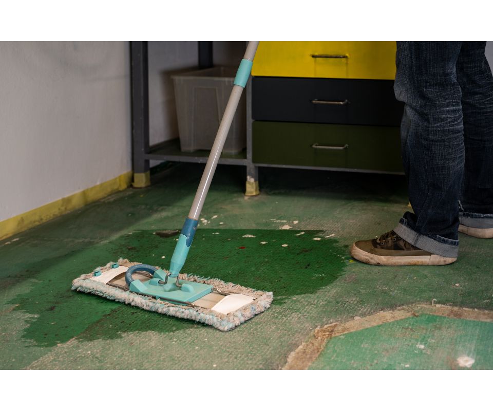 Betonovou podlahu před natíráním důkladně očistěte, omeťte od prachu a nečistot. Nový beton je potřeba nechat dostatečně vyzrát. Starší povrchy zase musí být pevné, soudržné a zbavené starých nepřilnavých nátěrů a mastných skvrn. Na závěr podlahu vytřete a nechte uschnout. Pomocí maskovací pásky zakryjte všechna místa, kterým hrozí zašpinění od barvy (např. okraje stěn, zárubně dveří, zásuvky).