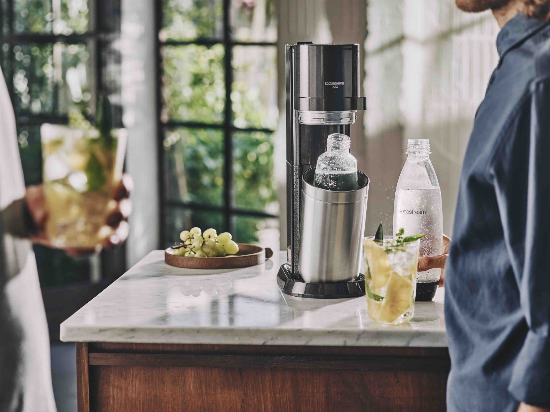 Bez vody se neobejde žádná oslava, je základem drinků, osvěžením k vínu i nutností mezi jednotlivými chody. Tahat domů těžké PET lahve ale není ideální ani pro vás, ani pro přírodu. Praktickým řešením je domácí výrobník perlivé vody. SodaStream DUO je pro večírky ideální: v kuchyni oceníte odolnou plastovou lahev, na stůl pak můžete postavit elegantní skleněnou karafu, která skvěle ladí i s prémiovým servisem. Obě nádoby jsou vhodné do myčky, takže úklid po akci je otázkou chvilky.