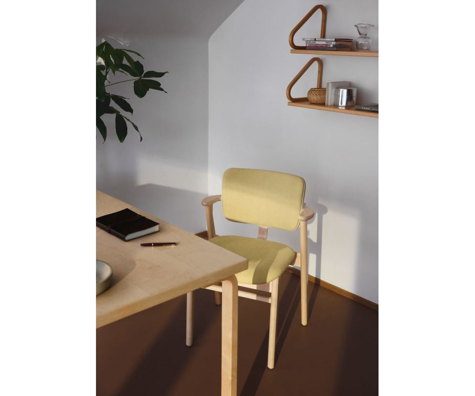 Krátké, zakřivené područky jsou ukázkou Tapiovaaraova přístupu: kompaktní, praktické, umožňují přisunout židli blízko ke stolu a usnadňují skladování, což ocení i menší prostory.